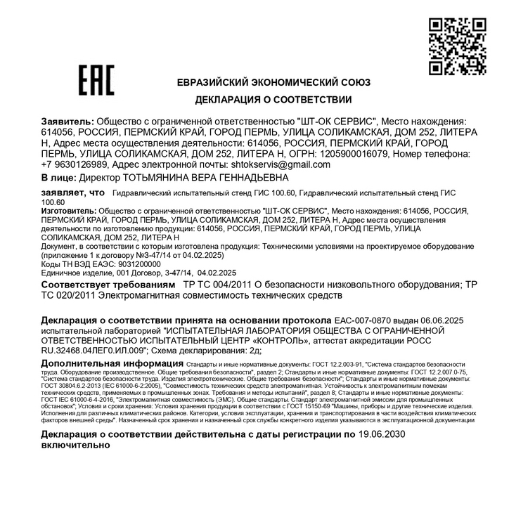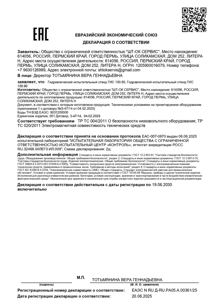 Система обеспечивает комплексное тестирование стойкости кабелей к гидростатическому давлению и проверку требований к продольной водонепроницаемости сердечника кабеля. Стенд представляет собой полностью автоматизированную систему с многоуровневой защитой и точным контролем всех параметров испытания.